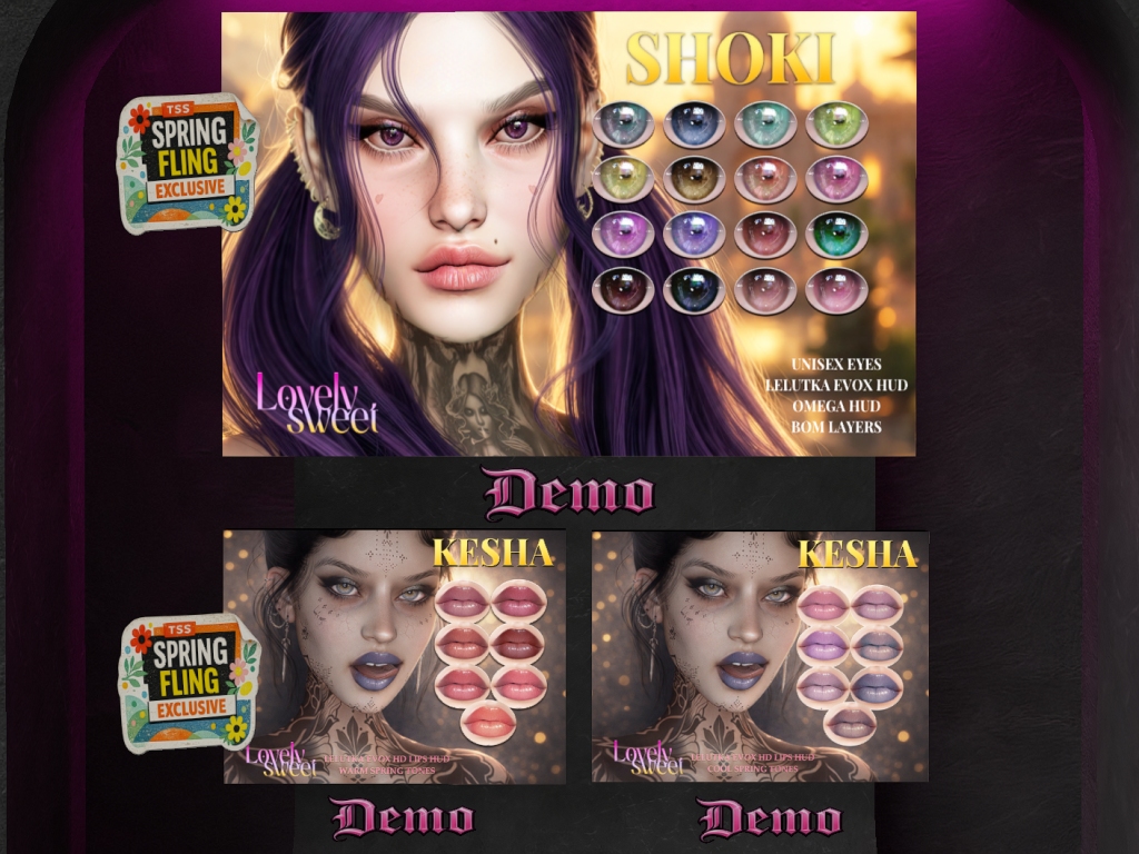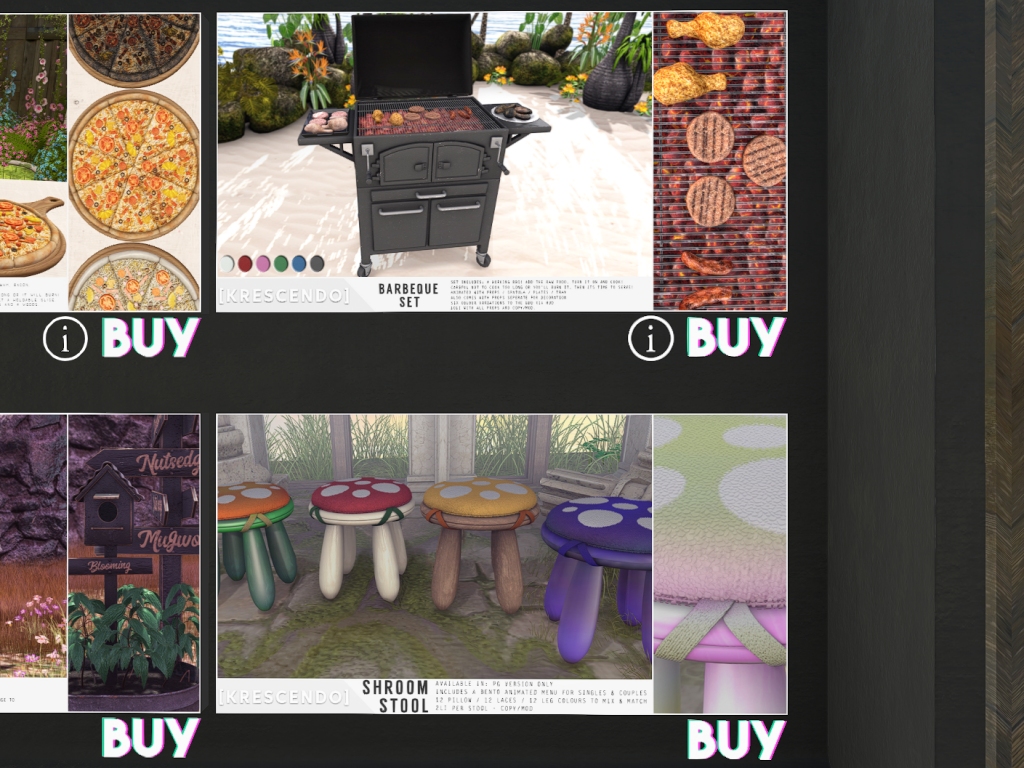 Featuring: Accessories, Animals/Pets/Companions, Appliers/Cosmetics/Nails, Builds, Clothing, Footwear, Home and Garden, Skins, Tattoos