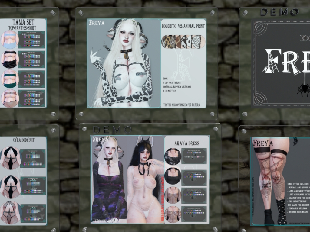 Featuring: Accessories, Animations/Poses/Props, Appliers/Cosmetics/Nails, Avatar Enhancements, Builds, Clothing, Footwear, Home and Garden, Shapes, Tattoos