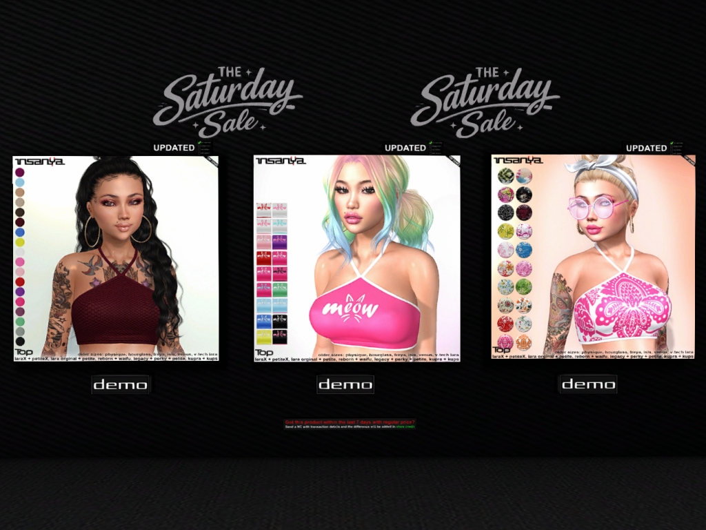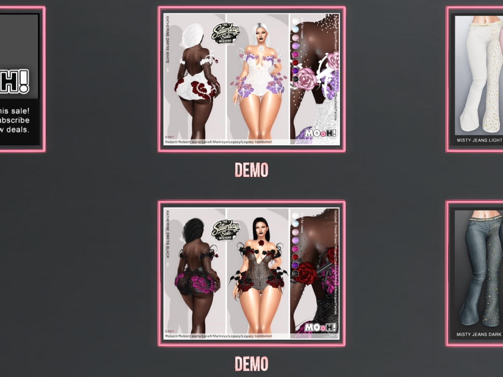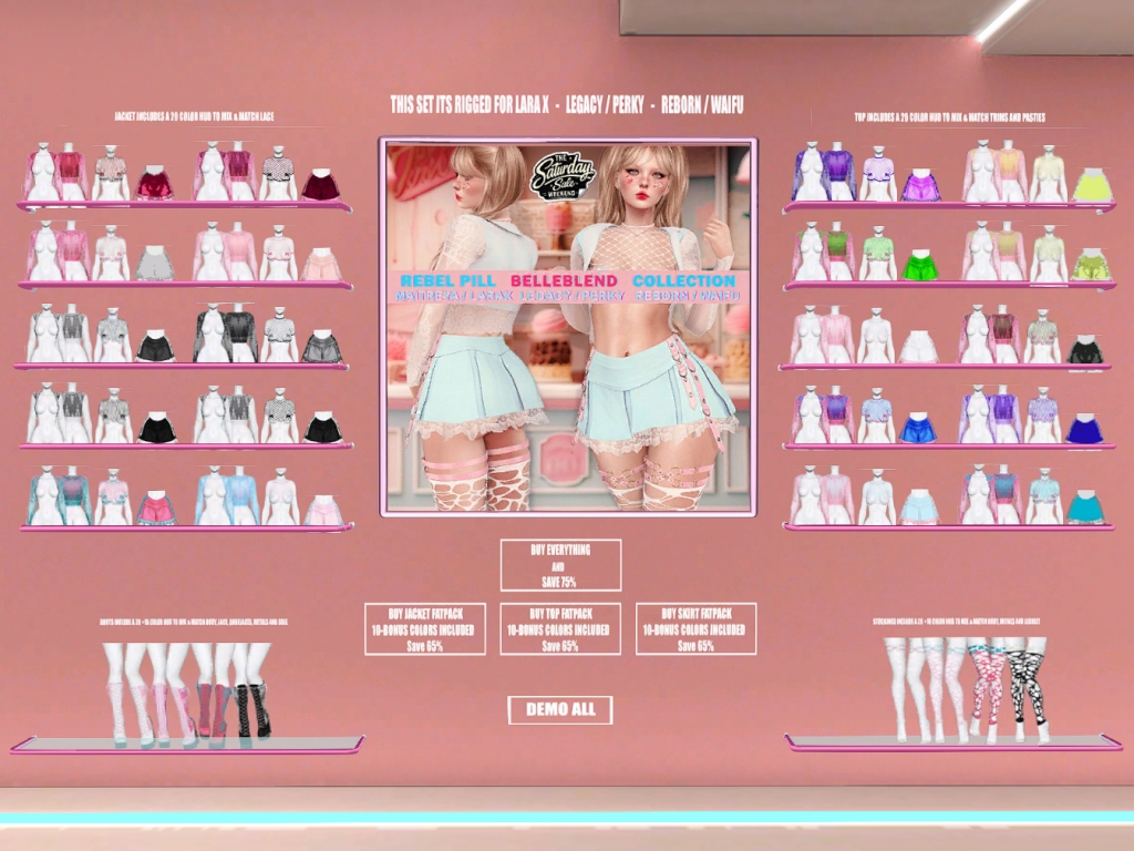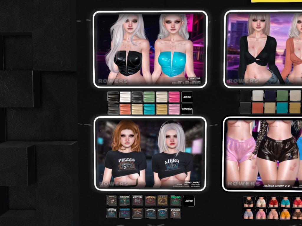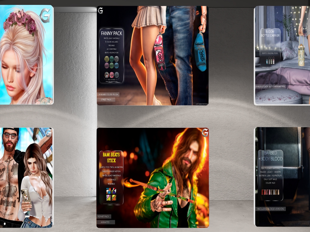Featuring: Accessories, Animations/Poses/Props, Appliers/Cosmetics/Nails, Avatar Components, Avatar Enhancements, Builds, Clothing, Hairs, Home and Garden, Skins, Tattoos, Vehicles