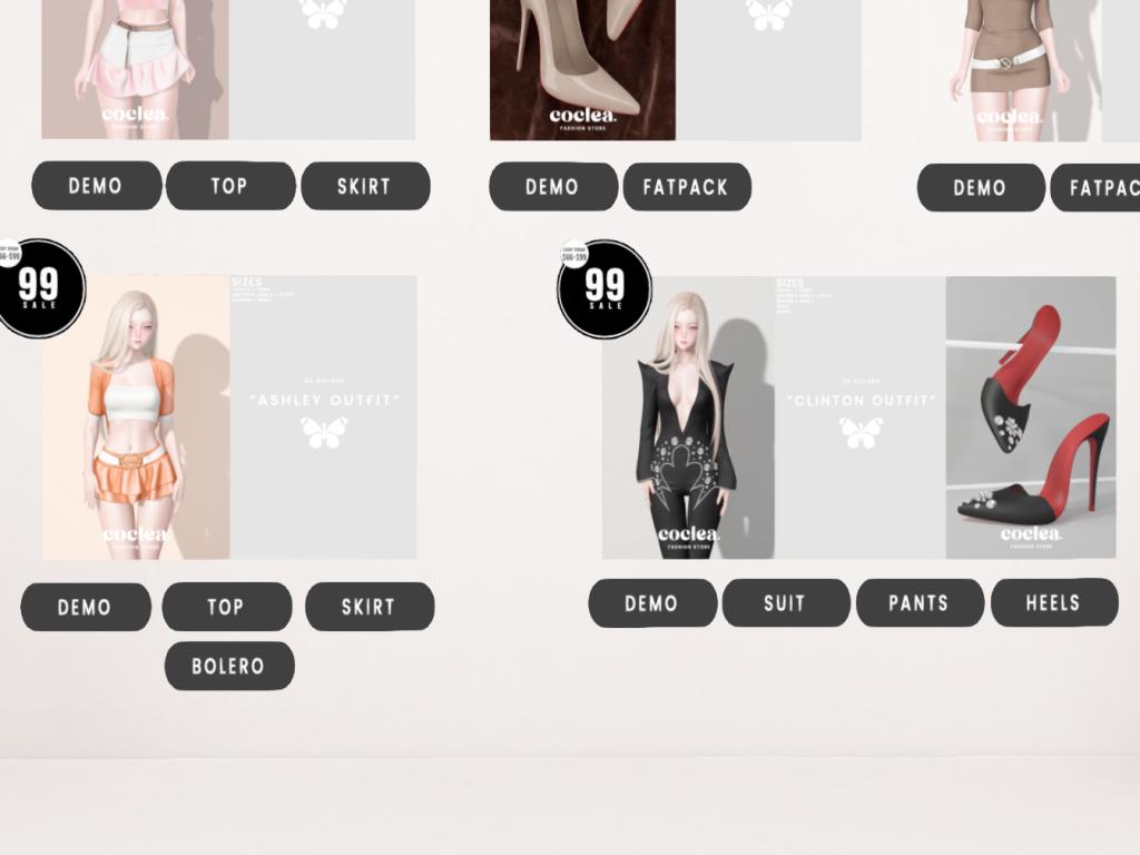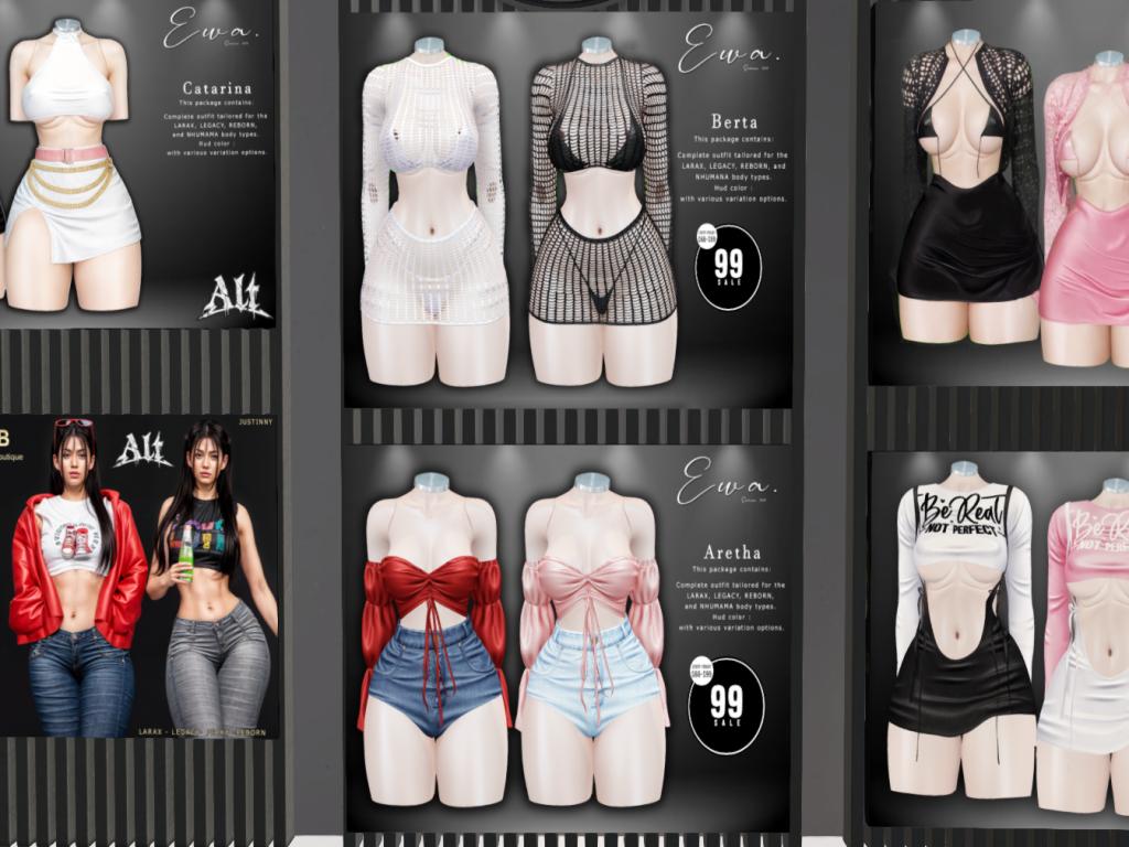 Featuring: Accessories, Animations/Poses/Props, Appliers/Cosmetics/Nails, Avatar Components, Avatar Enhancements, Clothing, Footwear, Home and Garden, HUDs, Skins, Tattoos, Vehicles