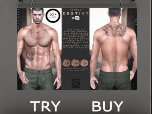 Featuring: Accessories, Animations/Poses/Props, Builds, Clothing, Footwear, Home and Garden, Tattoos, Textures