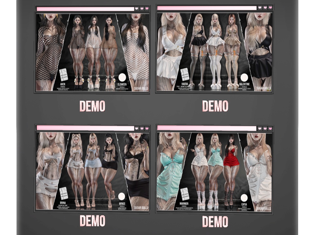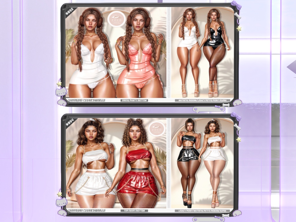 Featuring: Accessories, Animations/Poses/Props, Appliers/Cosmetics/Nails, Avatar Enhancements, Builds, Clothing, Footwear, Hairs, Home and Garden, Shapes