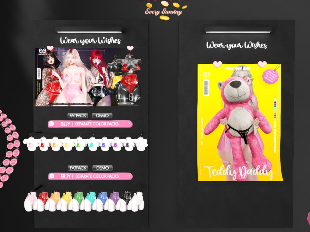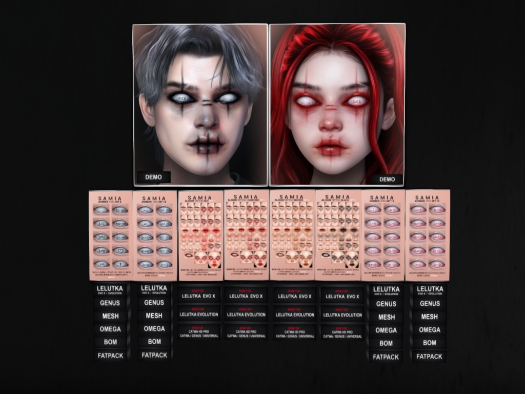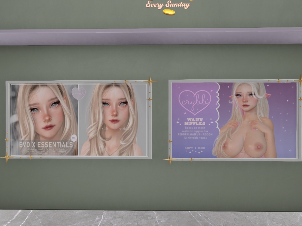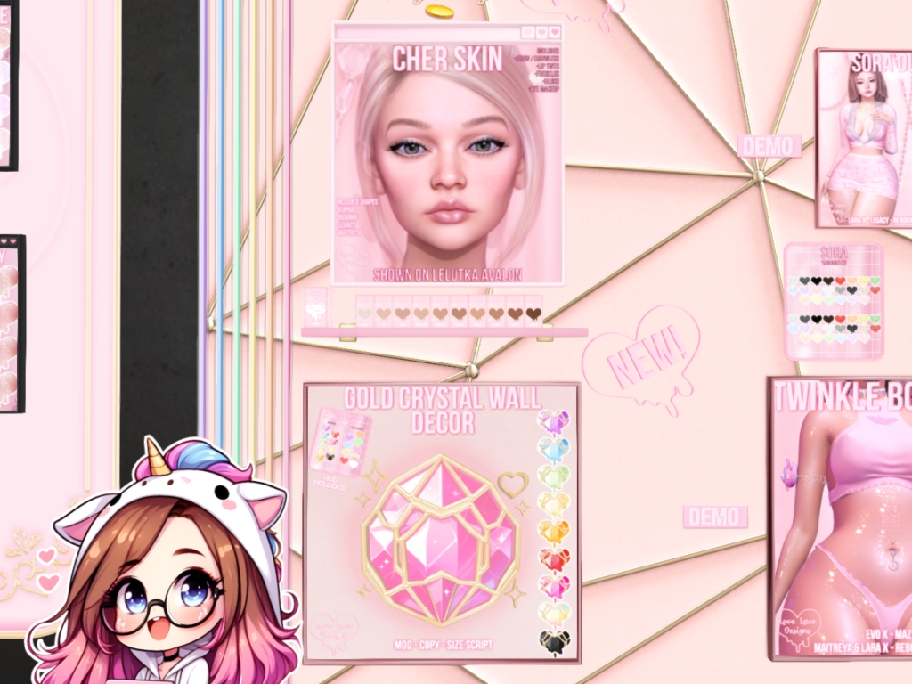 Featuring: Accessories, Animations/Poses/Props, Appliers/Cosmetics/Nails, Avatar Components, Avatar Enhancements, Builds, Clothing, Footwear, Home and Garden, Shapes, Skins, Tattoos