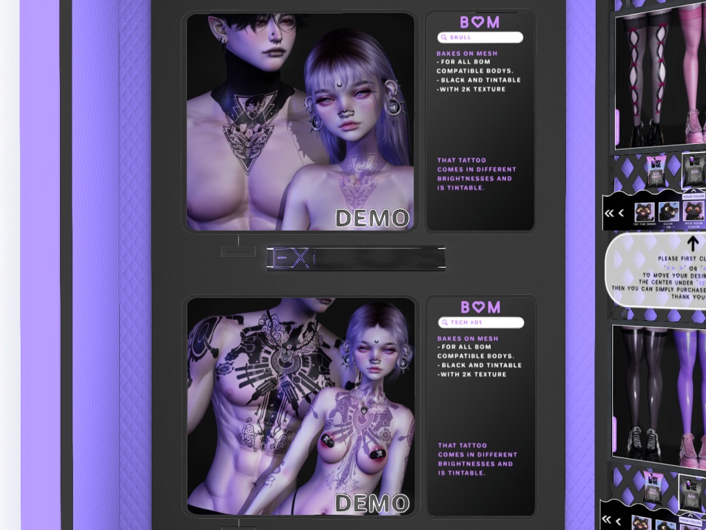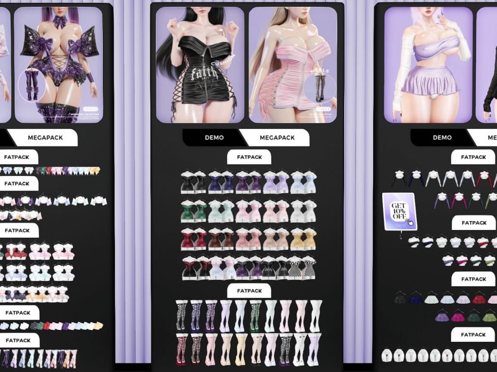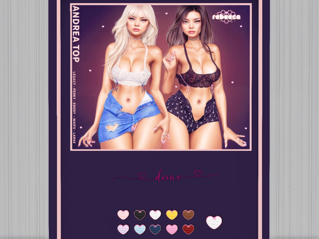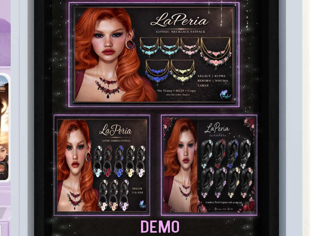 Featuring: Accessories, Animations/Poses/Props, Appliers/Cosmetics/Nails, Avatar Enhancements, Builds, Clothing, Footwear, Hairs, Home and Garden, HUDs, Shapes, Skins, Tattoos, Tools, Vehicles