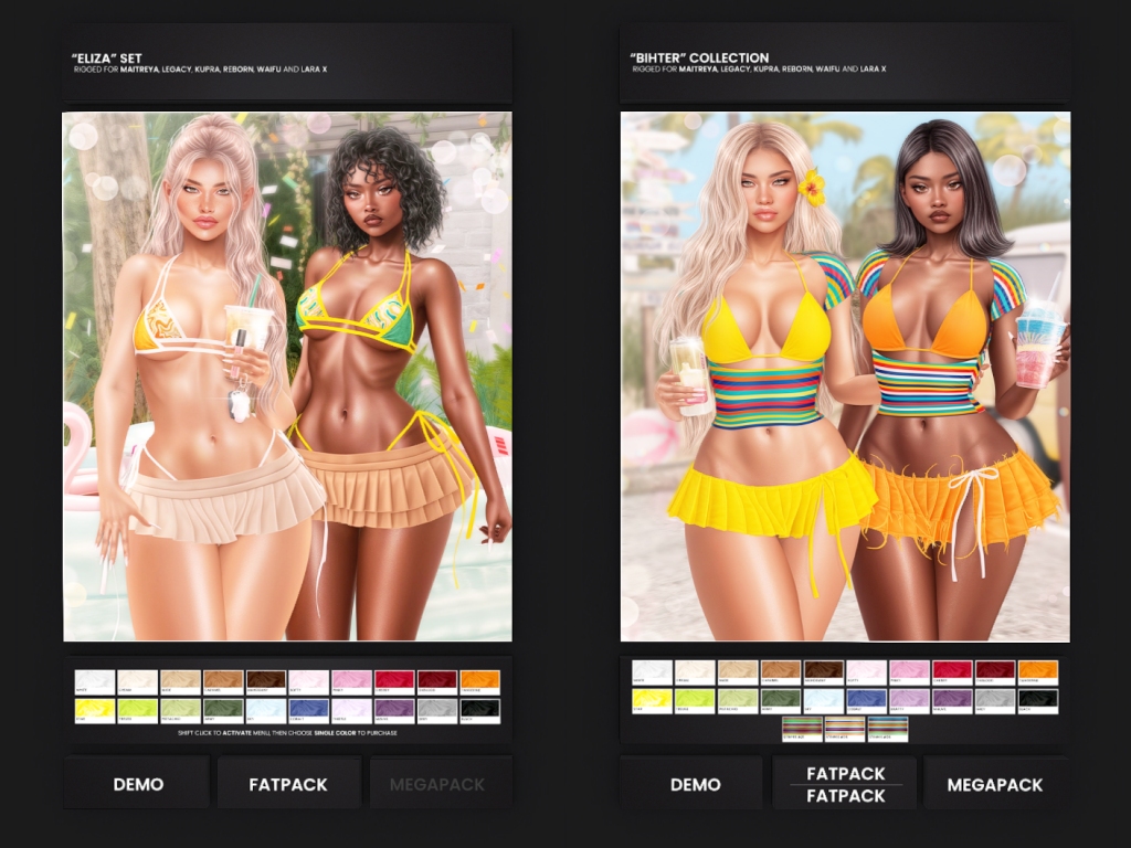 Featuring: Accessories, Animals/Pets/Companions, Animations/Poses/Props, Appliers/Cosmetics/Nails, Avatar Components, Avatar Enhancements, Builds, Clothing, Footwear, Hairs, Home and Garden, Skins, Tattoos, Vehicles