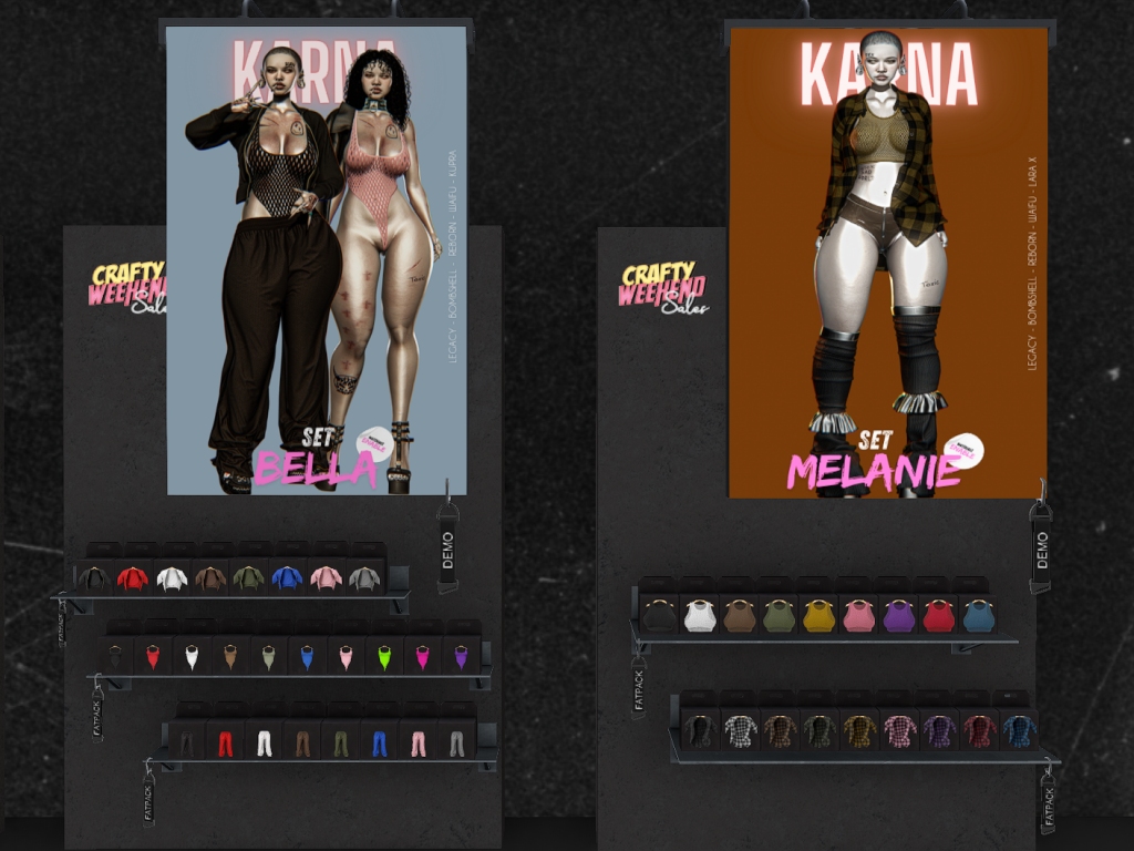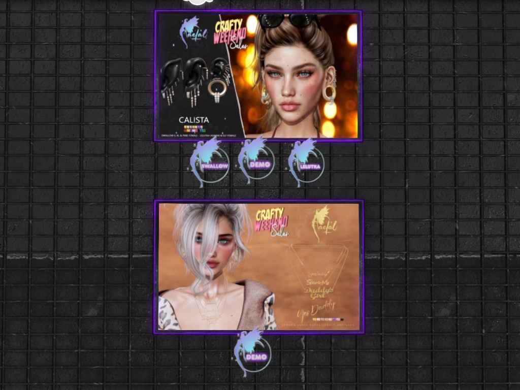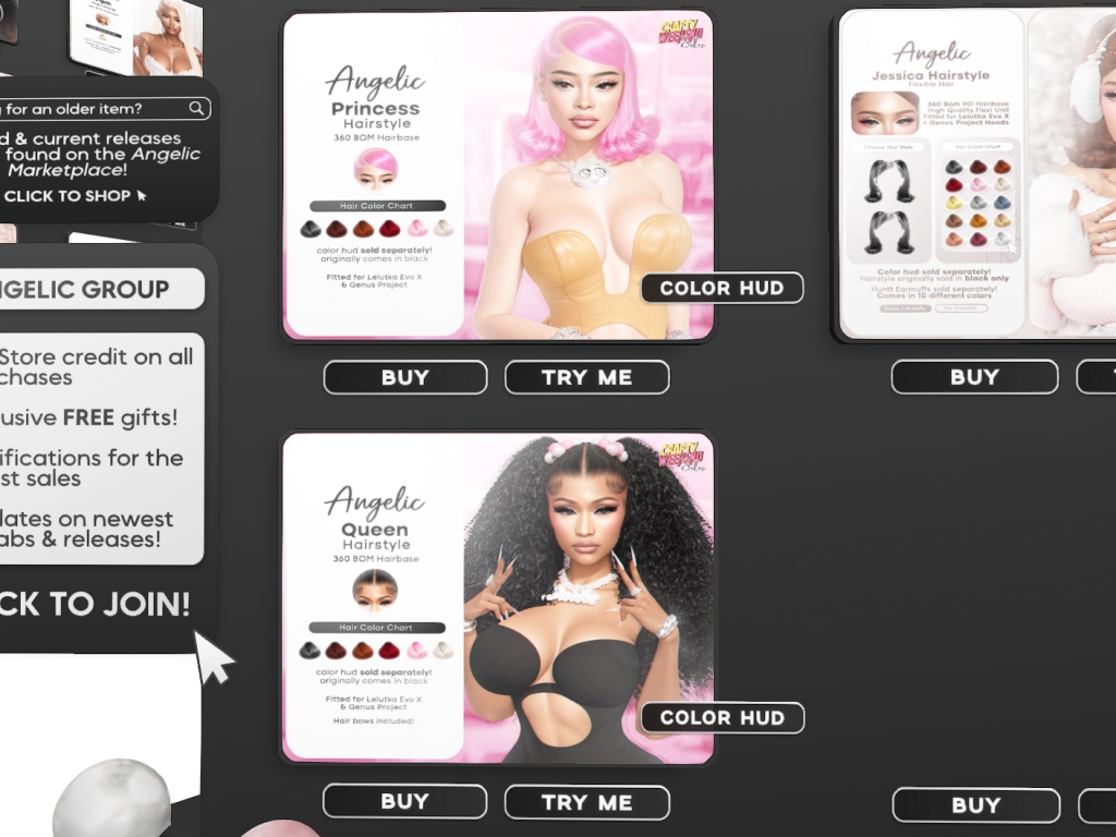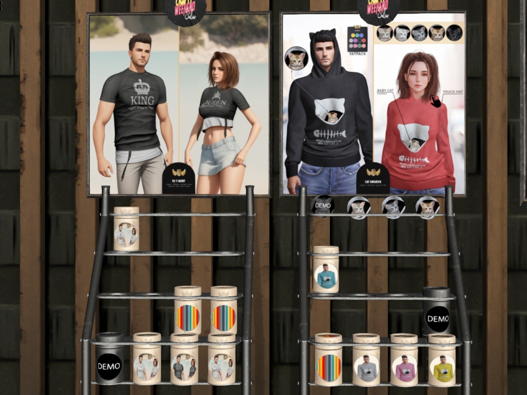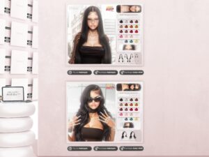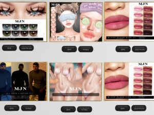 Featuring: Accessories, Animations/Poses/Props, Appliers/Cosmetics/Nails, Avatar Components, Avatar Enhancements, Builds, Clothing, Footwear, Hairs, Home and Garden, Skins, Tattoos, Vehicles
