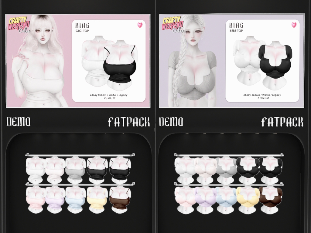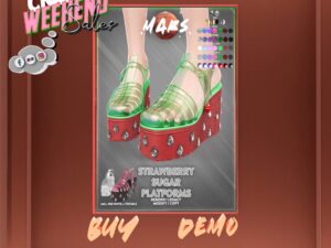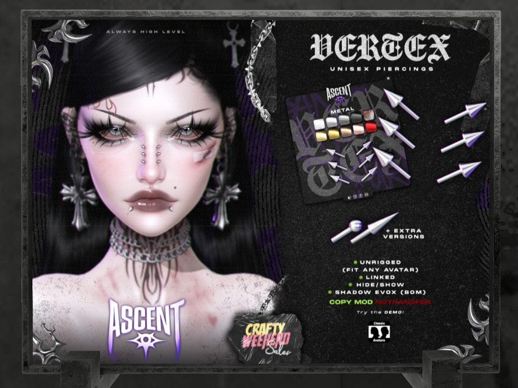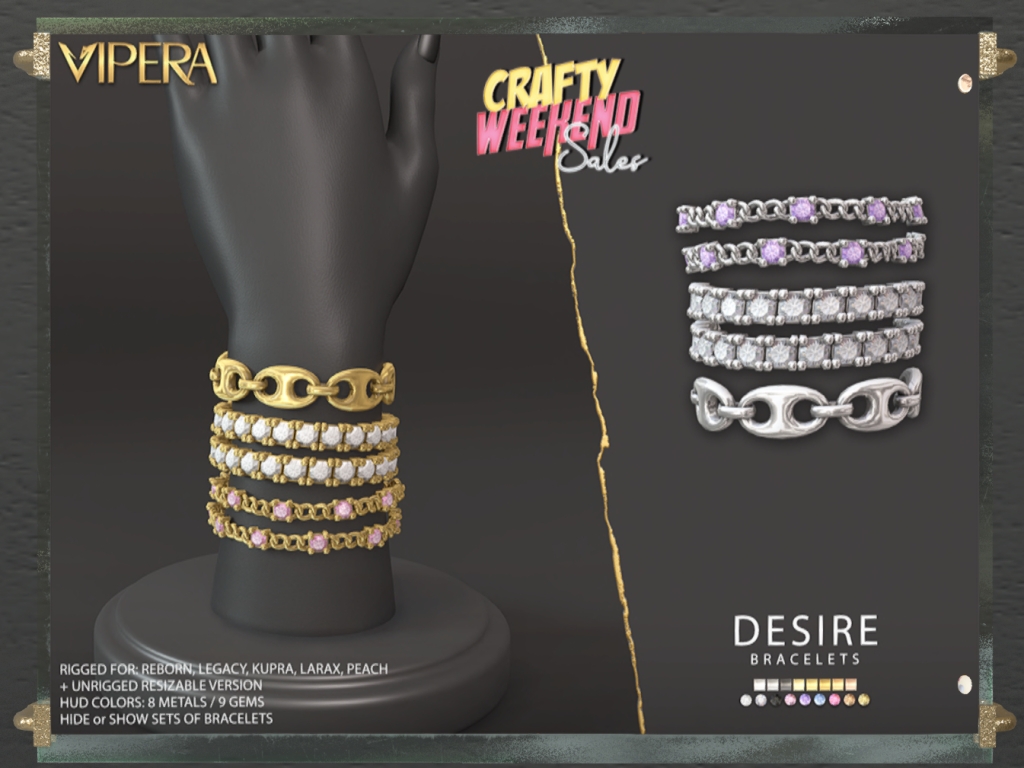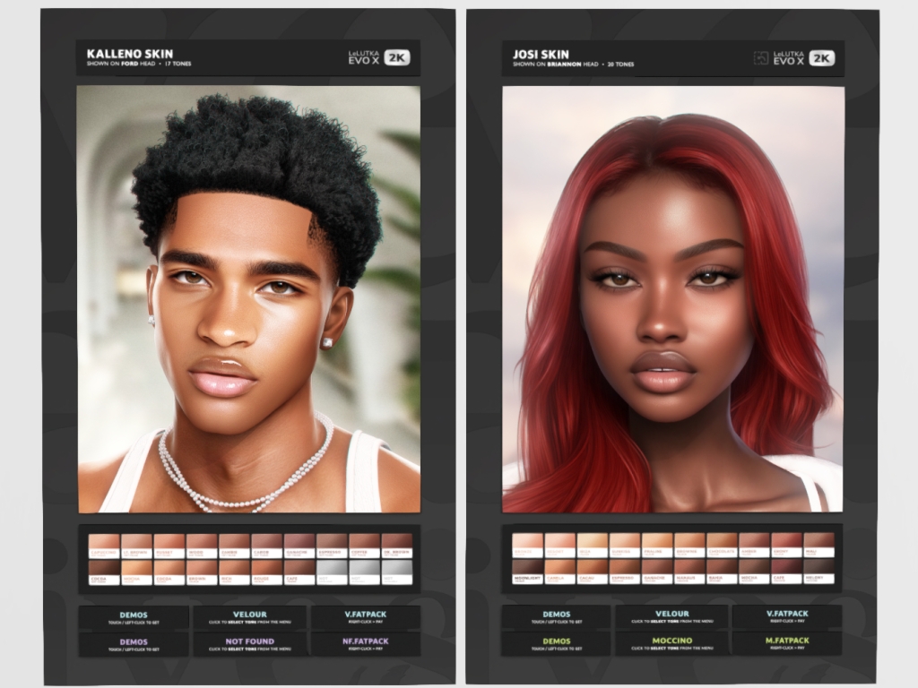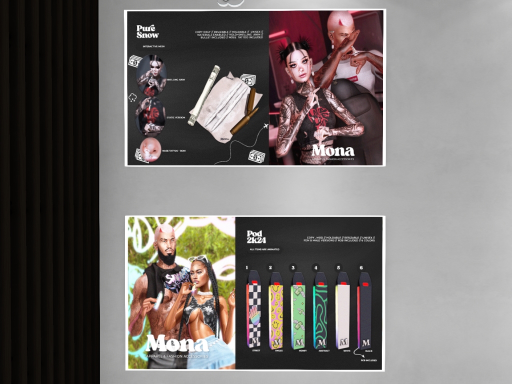 Featuring: Accessories, Animations/Poses/Props, Appliers/Cosmetics/Nails, Avatar Components, Avatar Enhancements, Builds, Clothing, Footwear, Hairs, Home and Garden, Skins, Tattoos, Vehicles