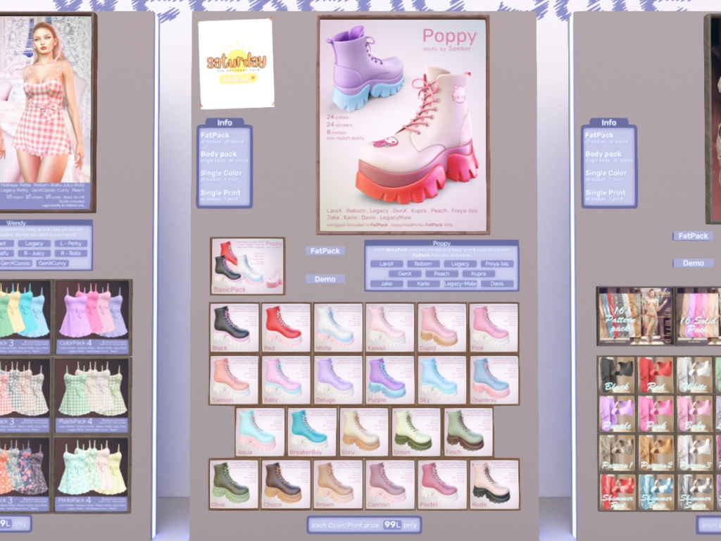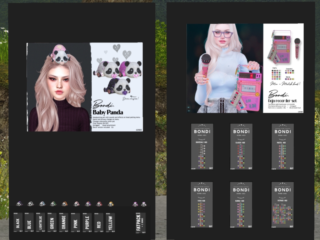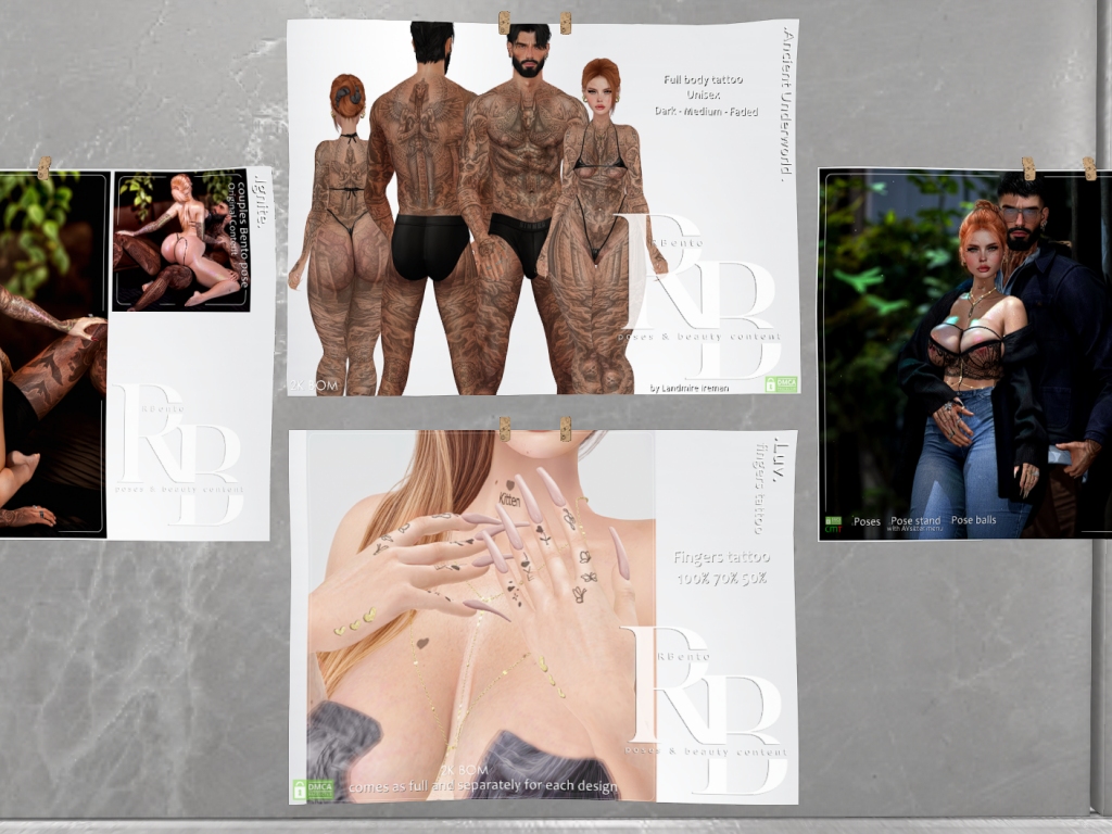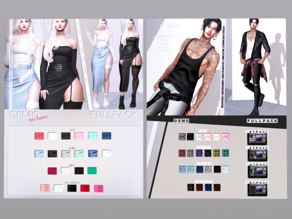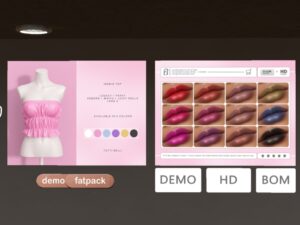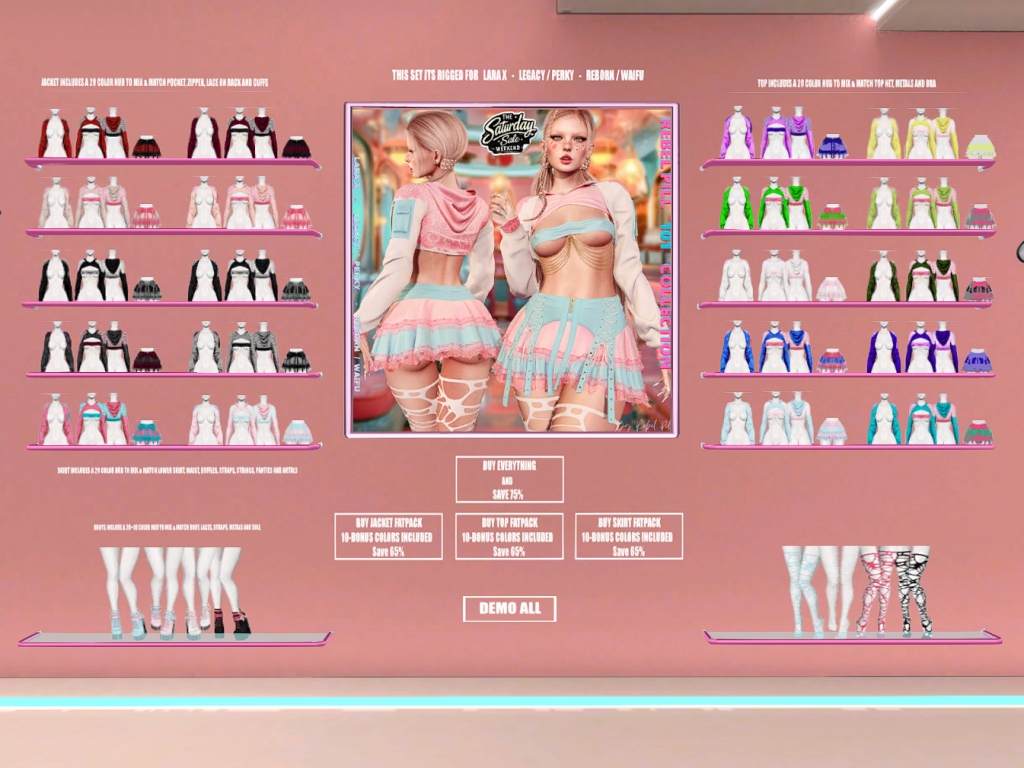 Featuring: Accessories, Animations/Poses/Props, Appliers/Cosmetics/Nails, Avatar Components, Avatar Enhancements, Builds, Clothing, Hairs, Home and Garden, Skins, Tattoos, Vehicles