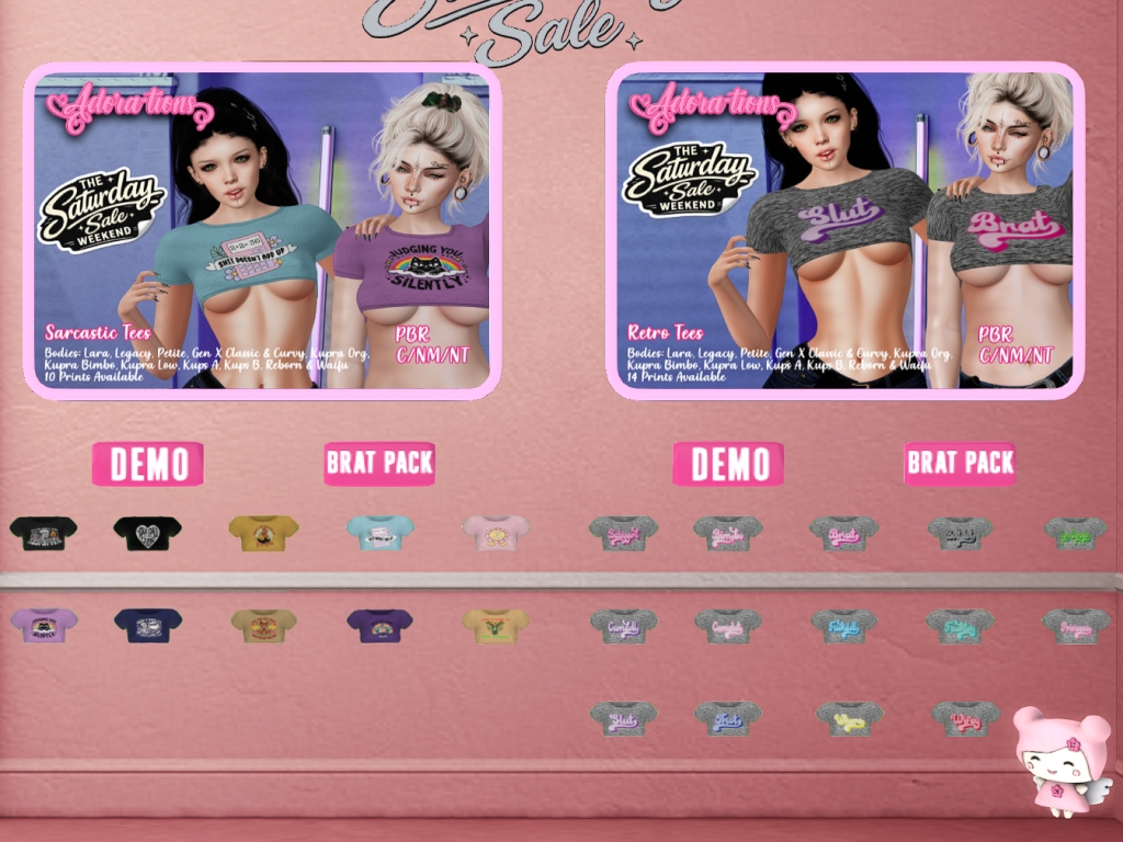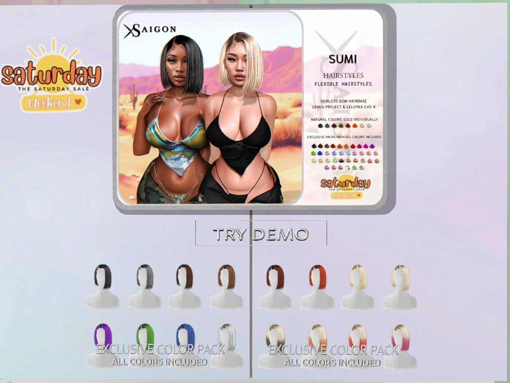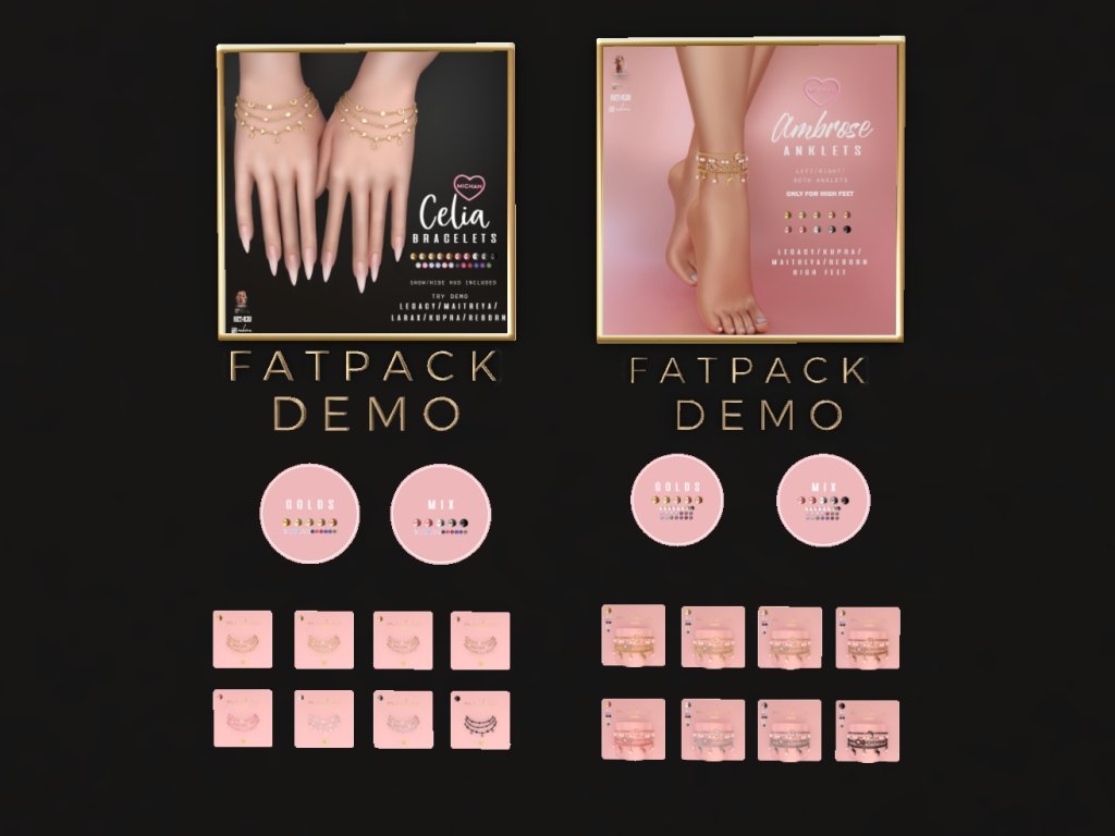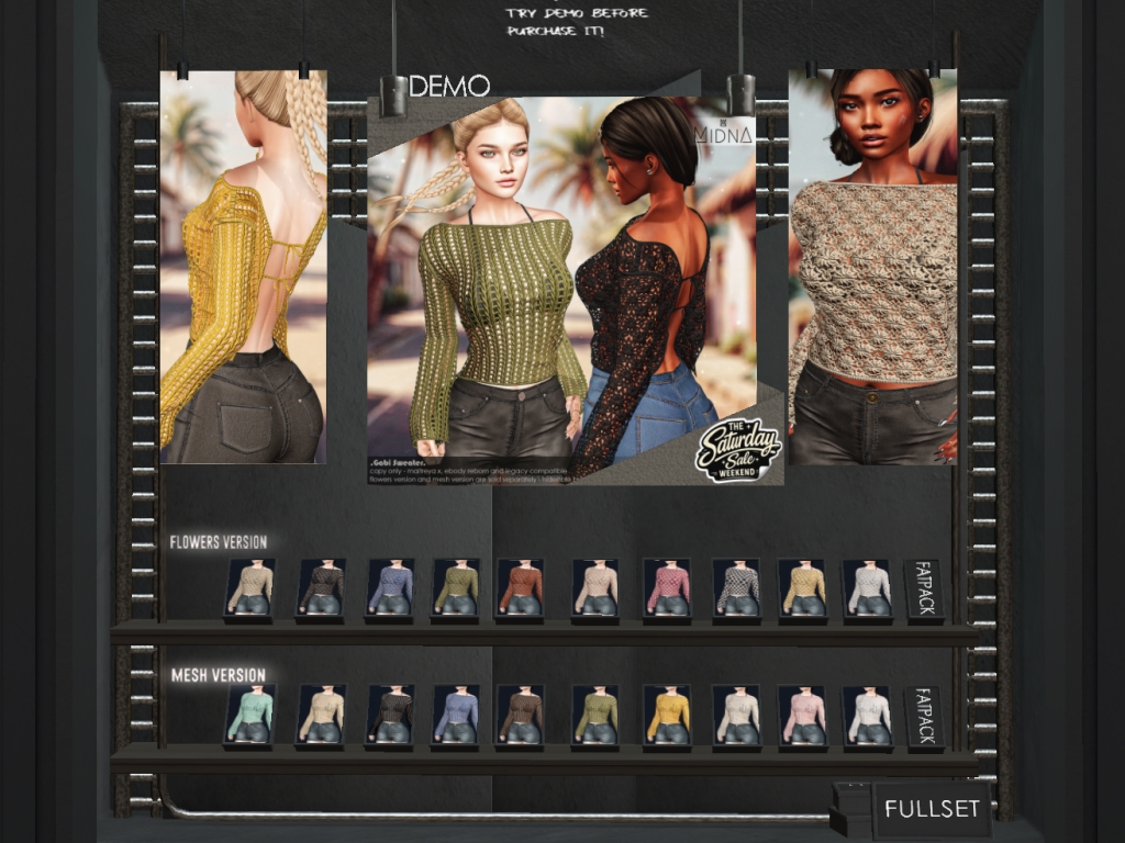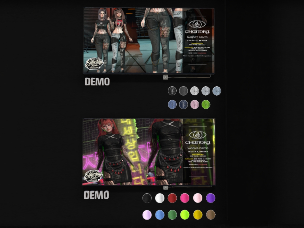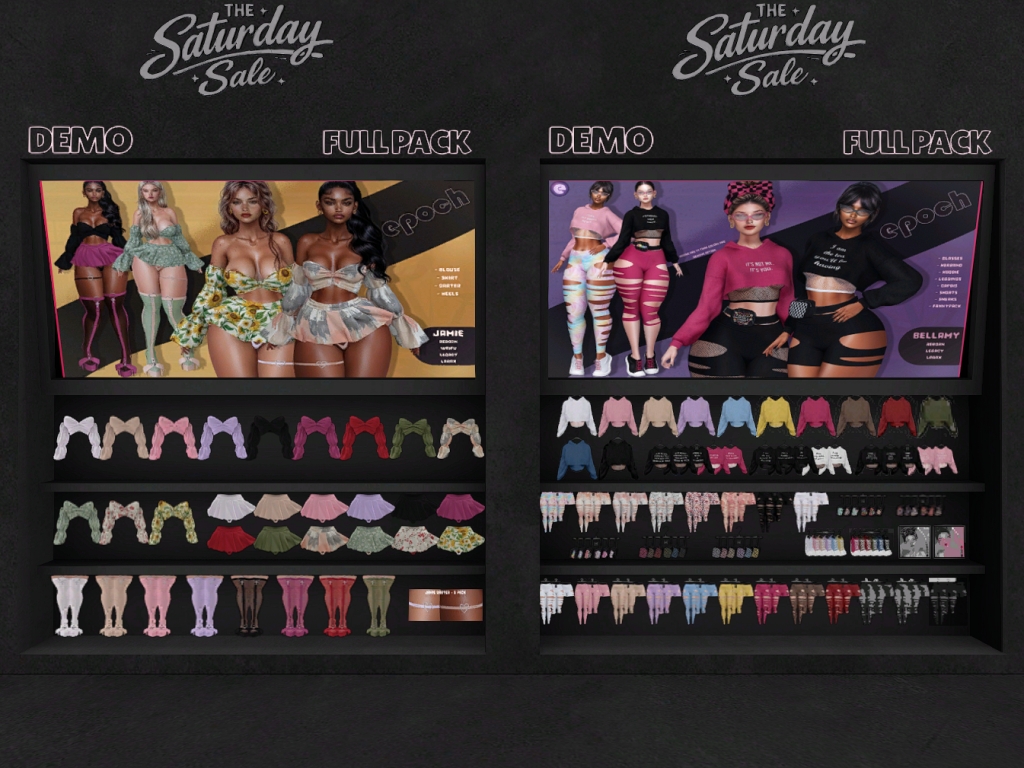 Featuring: Accessories, Animations/Poses/Props, Appliers/Cosmetics/Nails, Avatar Components, Avatar Enhancements, Builds, Clothing, Hairs, Home and Garden, Skins, Tattoos, Vehicles