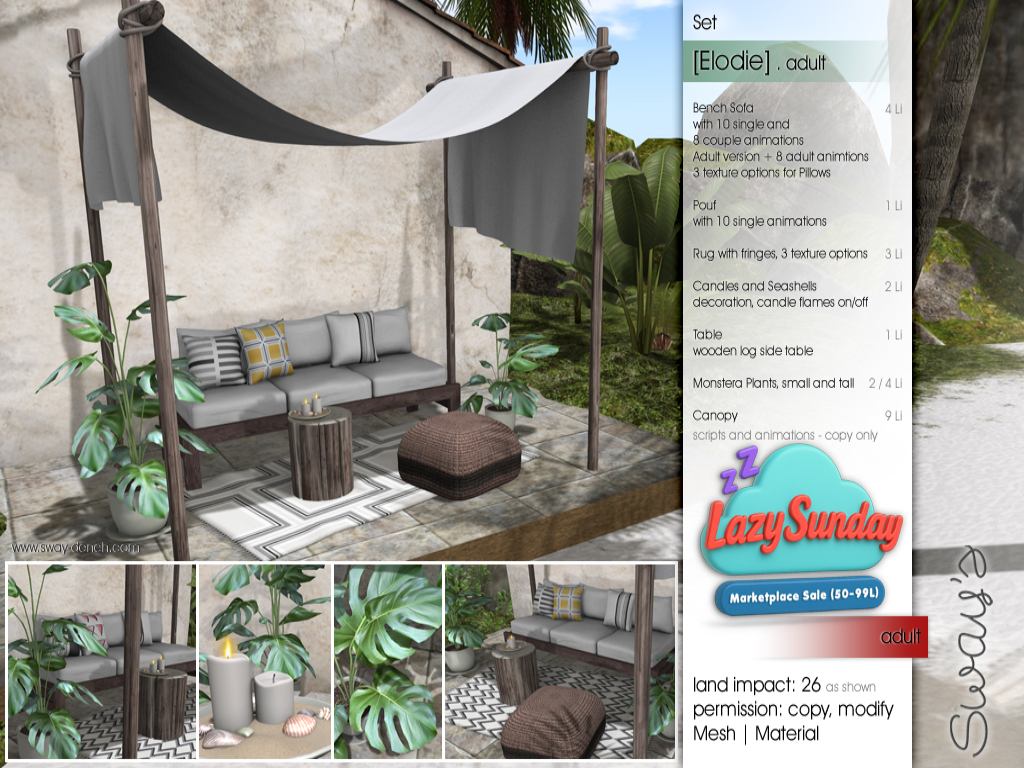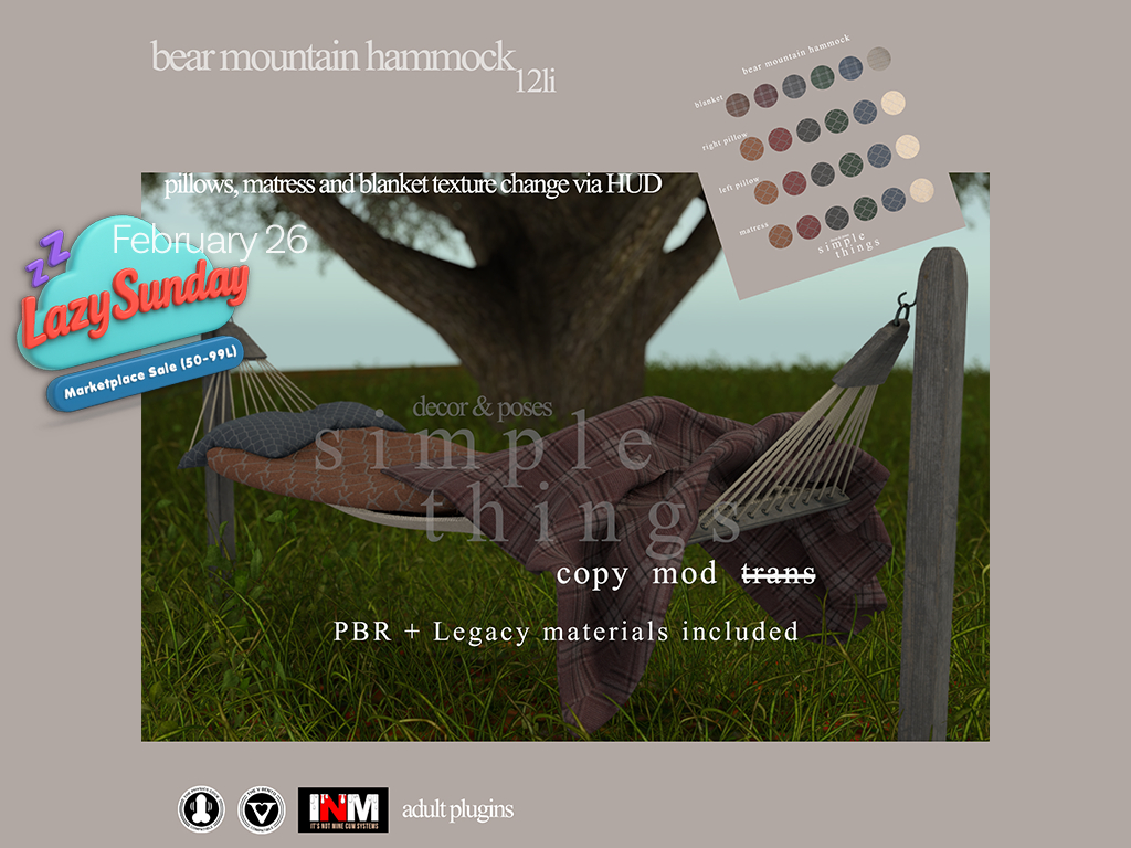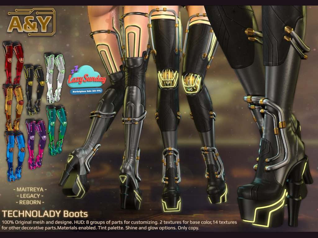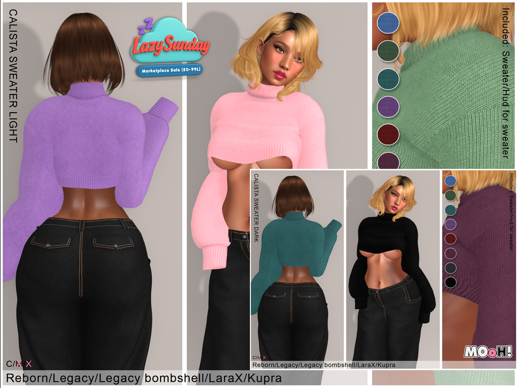 Featuring: Accessories, Animations/Poses/Props, Appliers/Cosmetics/Nails, Avatar Components, Avatar Enhancements, Builds, Clothing, Footwear, Home and Garden, Interactive Games, Skins, Tattoos, Vehicles